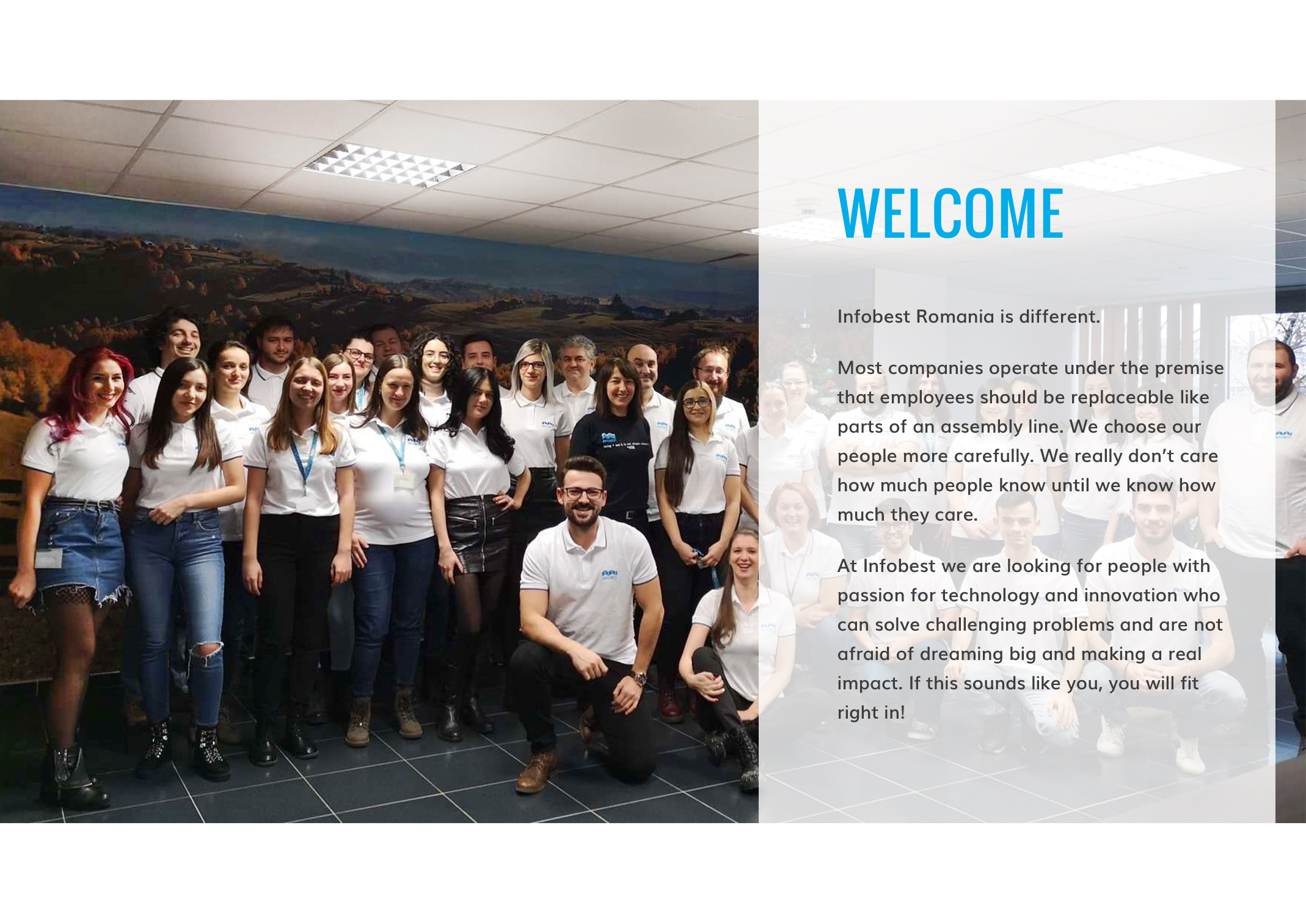 At Infobest, we are looking for individuals with a passion for technology and innovation who can solve challenging problems and are not afraid of dreaming big and making a real impact. If this sounds like you, you will fit right in!